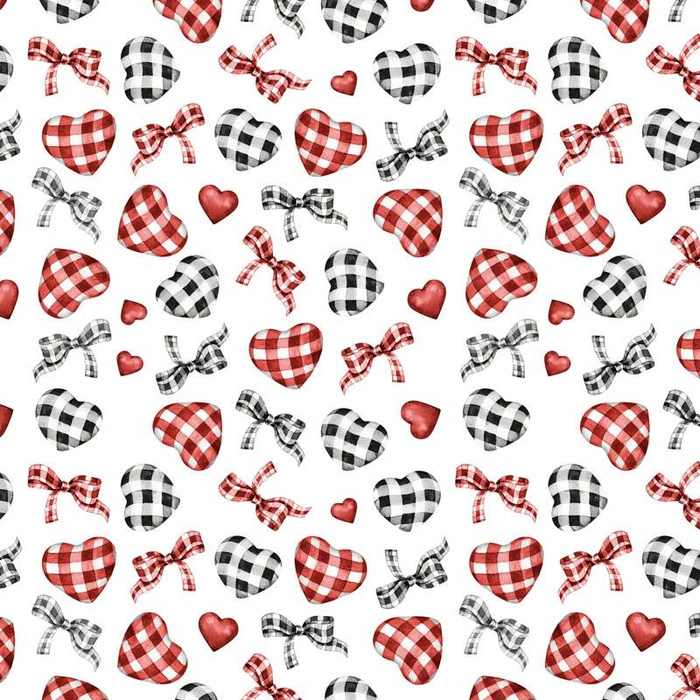 Materiał do szycia z nadrukowanym wzorem SERCA / MINI KRATA VICHY (KRATA I RÓŻE)