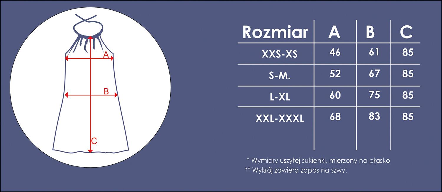 Rozmiary są zgodne z tabelą wymiarów, którą podaliśmy poniżej. Zestaw “Sukienka DALIA MINI” zawiera zapas na szwy.