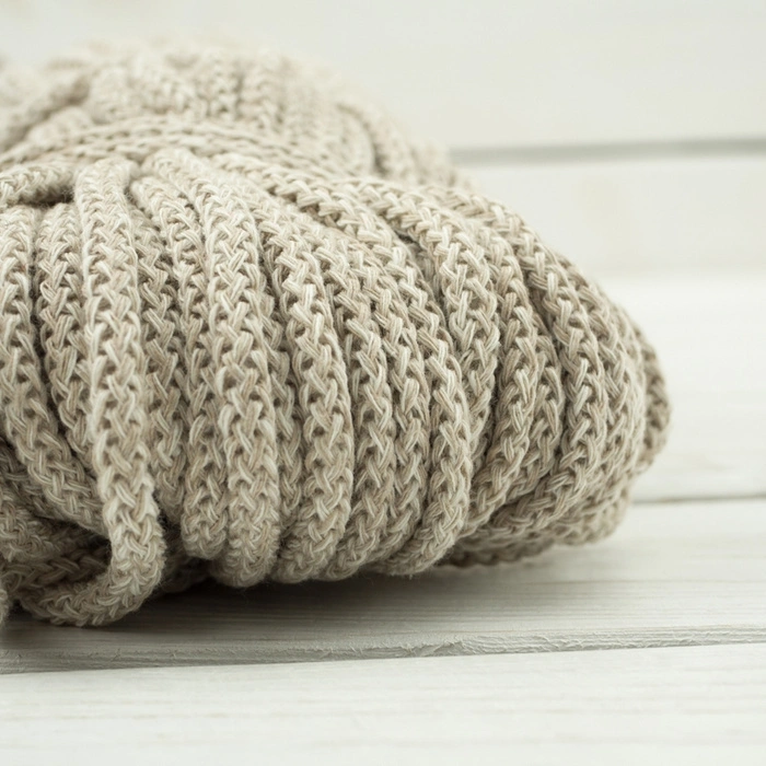 Sznurek bawełniany z rdzeniem akrylowym w kolorze bardzo zbliżony do koloru bawełnianego oplotu