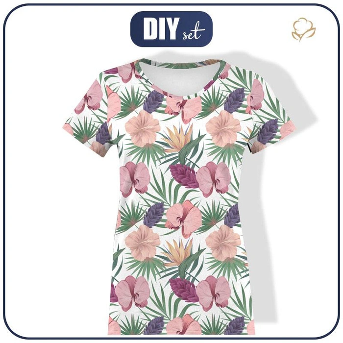 T-SHIRT DAMSKI - EGZOTYCZNE ROŚLINY / biały - single jersey XXL