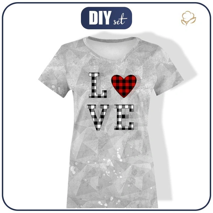 T-SHIRT DAMSKI - LOVE / serce vichy (BE MY VALENTINE) / LÓD - single jersey XXXL