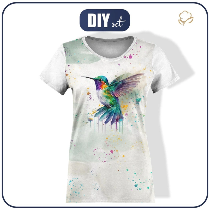 T-SHIRT DAMSKI - WATERCOLOR HUMMINGBIRD - zestaw do uszycia XXXL