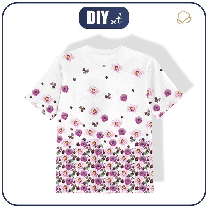 T-SHIRT DZIECIĘCY - KWIATY I KONICZYNY (NA ŁĄCE) - single jersey (92/98)