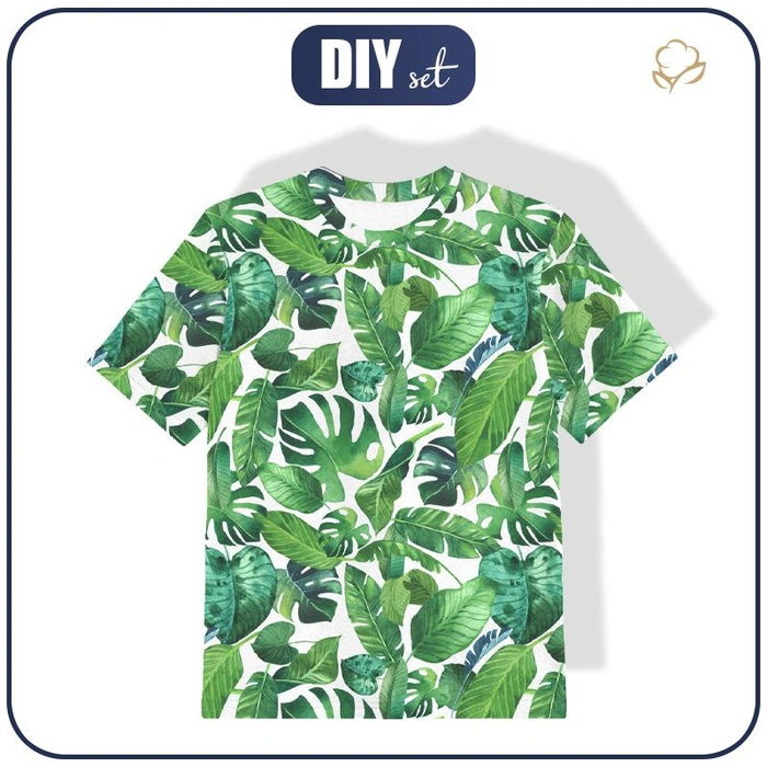 T-SHIRT DZIECIĘCY - TROPIKALNE LIŚCIE wz. 2 / biały - single jersey