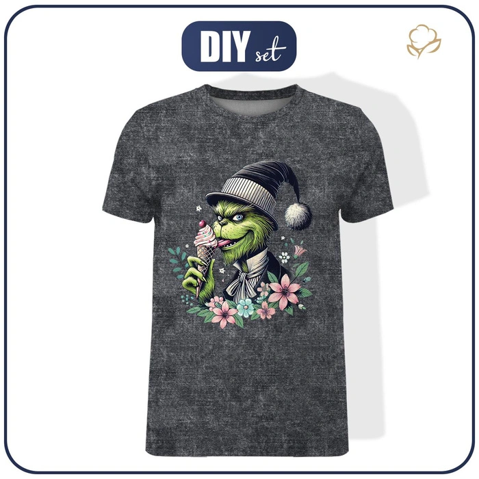 W zestawie znajduje się materiał niezbędny do uszycia męskiej koszulki typu T-shirt.