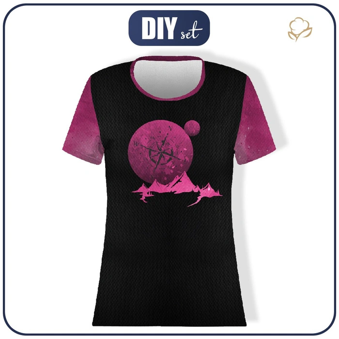 Nadrukowane na funkcyjnej elastycznej dzianinie sportowej gotowe elementy wykroju koszulki damskiej (wystarczy wyciąć i zszyć)