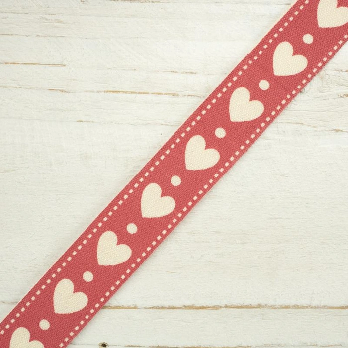 Tasiemka bawełniana 15mm - serca / malinowy