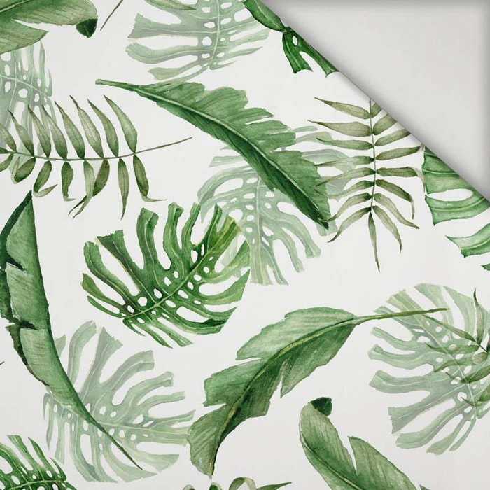 TROPIKALNE LIŚCIE MIX wz. 1 / biały (JUNGLE) - lycra 300g
