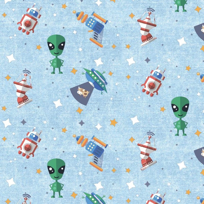W KOSMOSIE WZ. 3 (WYPRAWA W KOSMOS) / ACID WASH BŁĘKITNY - single jersey z elastanem