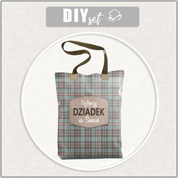 SHOPPERKA - NAJLEPSZY DZIADEK NA ŚWIECIE / krata retro - tkanina wodoodporna - zestaw do uszycia