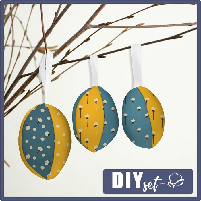 V sadě najdete materiály nutné k šití 7 velikonočních kraslic.