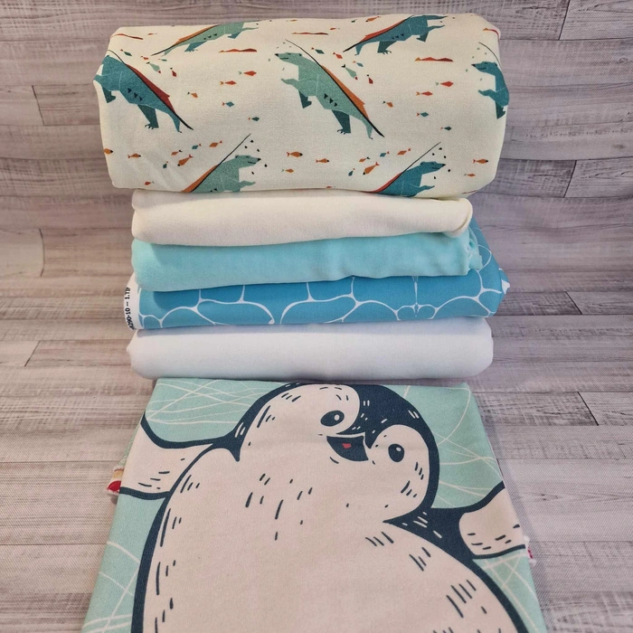 Balení MIX HRUBÝCH ÚPLETŮ je sada hladkých a potištěných látek o celkové délce přibližně 2mb.