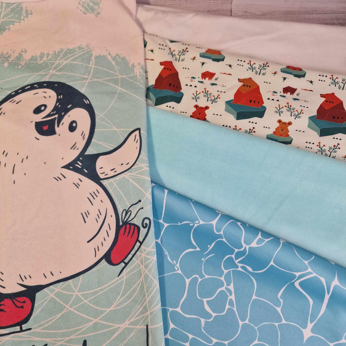Balení MIX HRUBÉ PLETENINY je sada hladkých a potištěných látek o celkové délce přibližně 2mb.