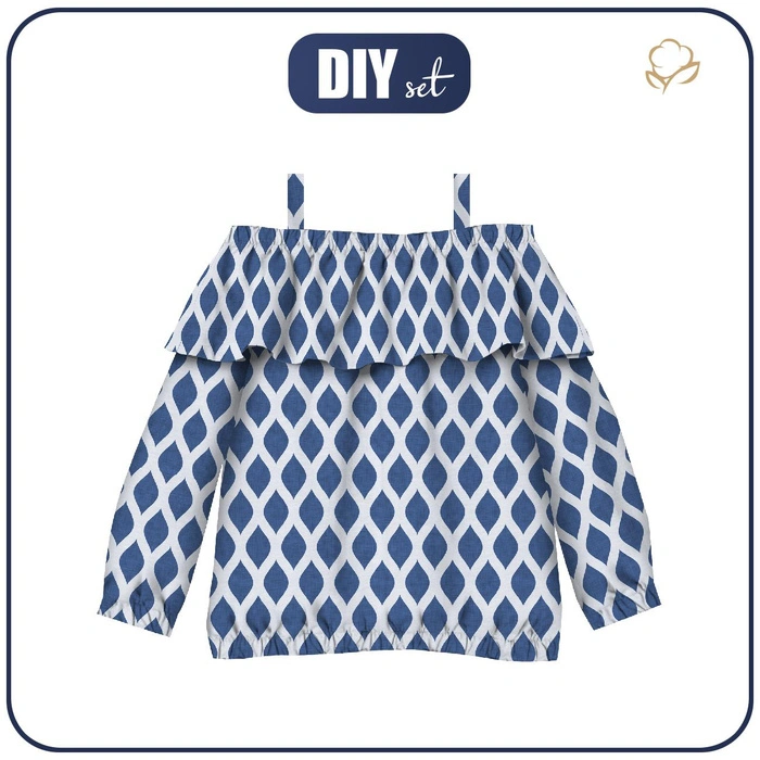 Bardot halenka (VIKI) - BÍLÉ ŘETĚZY (CLASSIC BLUE) - Sada šití