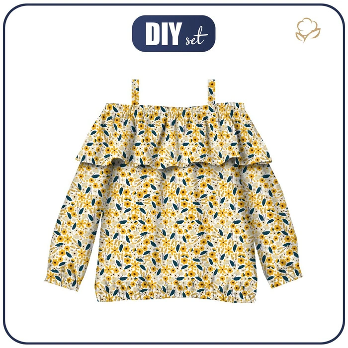 Bardot halenka (VIKI) - KVĚTINKY VZ.2 / bílá - Sada šití