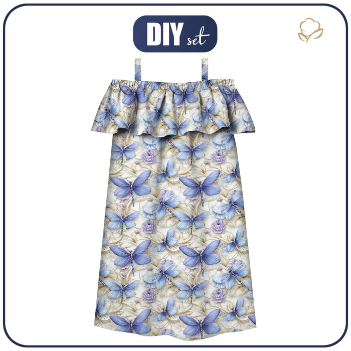 Bardot šaty (LILI) - Butterfly & Flowers wz.15 - Sada šití - 122-128