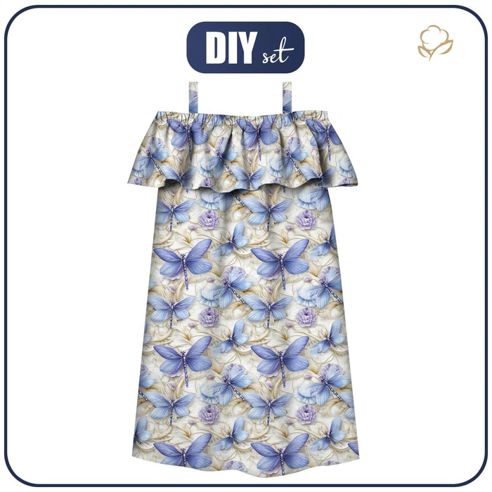 Bardot šaty (LILI) - Butterfly & Flowers wz.15 - Sada šití - 134-140