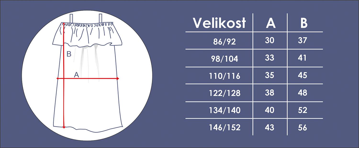 Bardot výstřih šatů LILI vzor se skládá z: přední, zadní části a prvků volánu a ramínek. Sada neobsahuje gumičky.