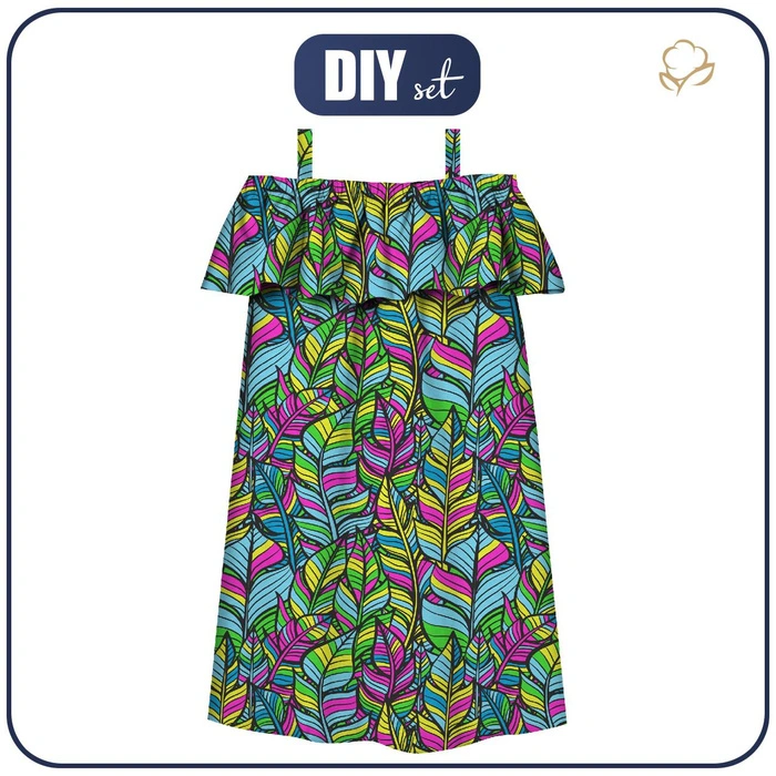 Bardot šaty (LILI) - NEON LISTY - Sada šití - 122-128