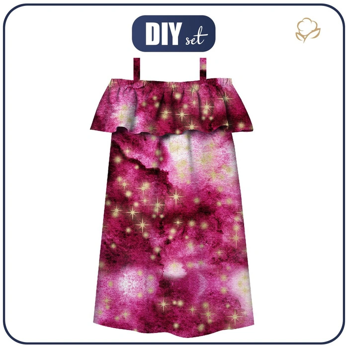 Bardot šaty (LILI) - ZLATÉ HVĚZDY Vz. 2 / AKVARELOVÝ MRAMOR - Sada šití