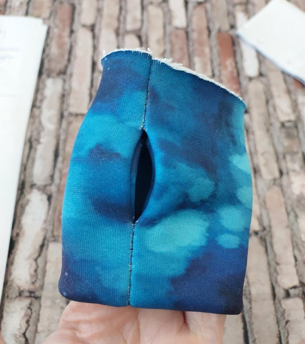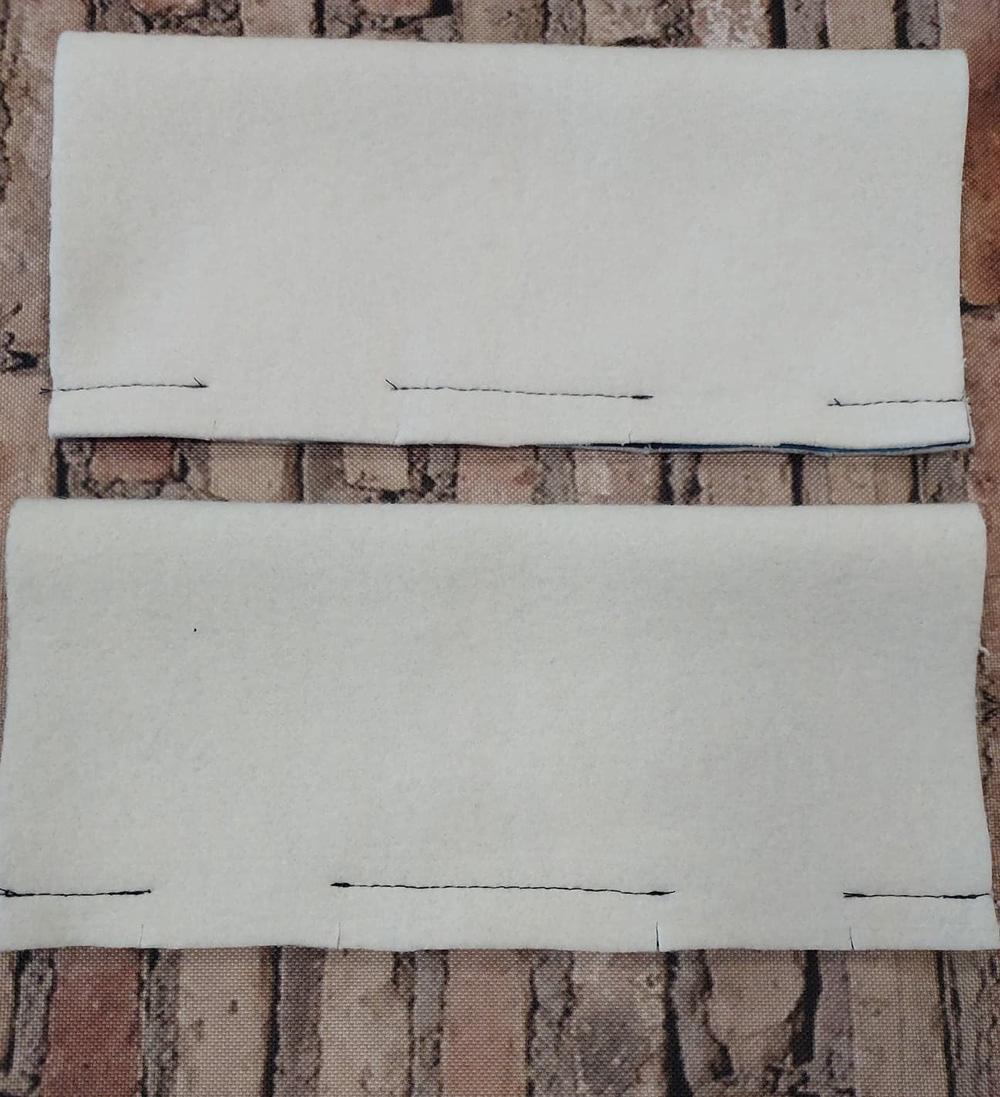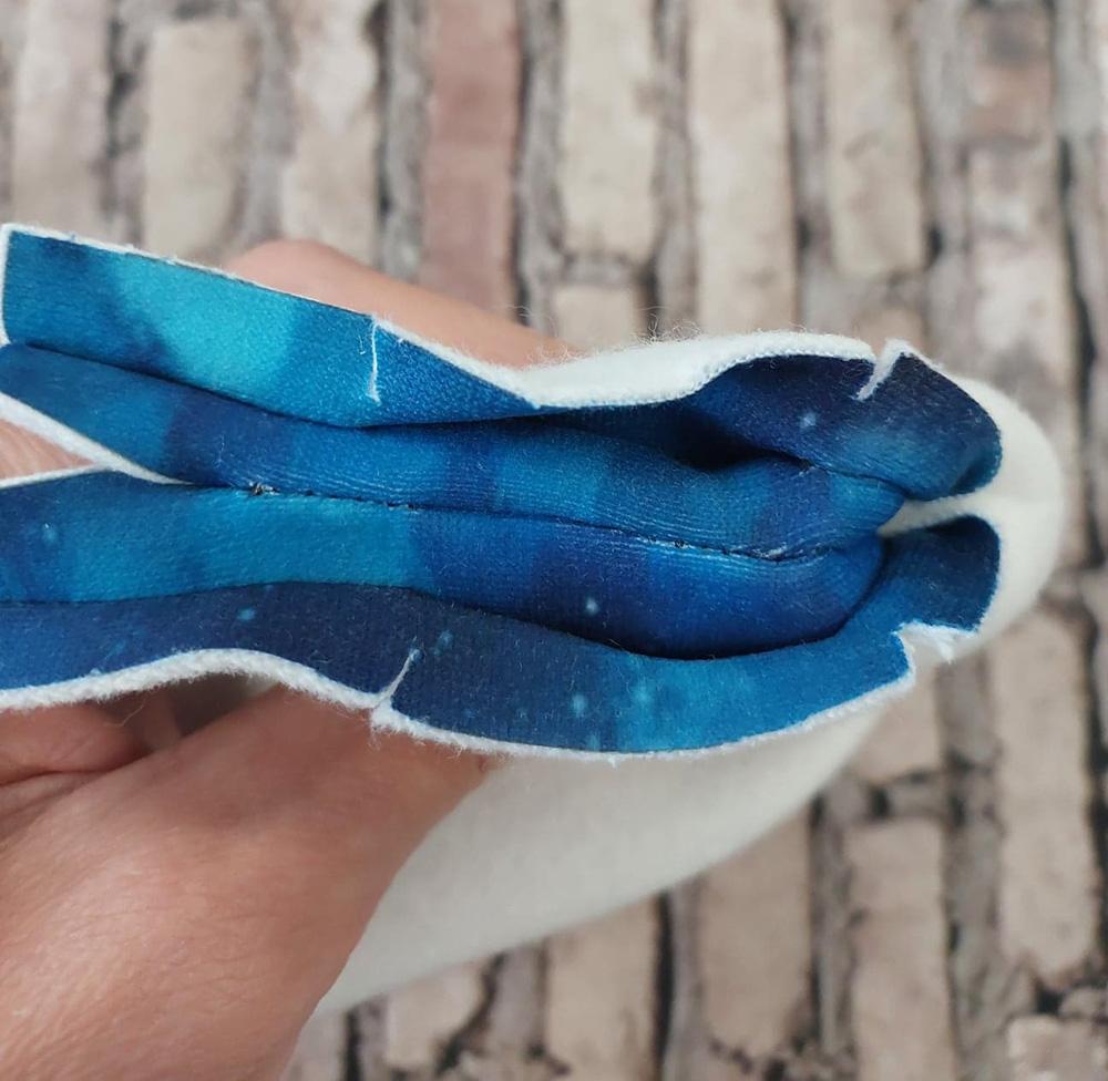 Złóż jeszcze raz na pół i zszyj zapasy na szwy w miejscu otworu.