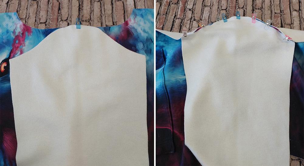 Zepnij na ramionach przód i tył bluzy. Zszyj.