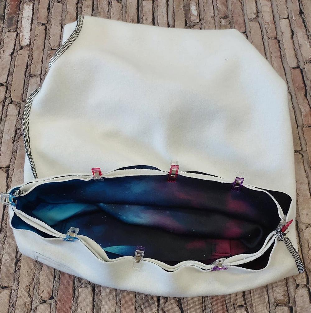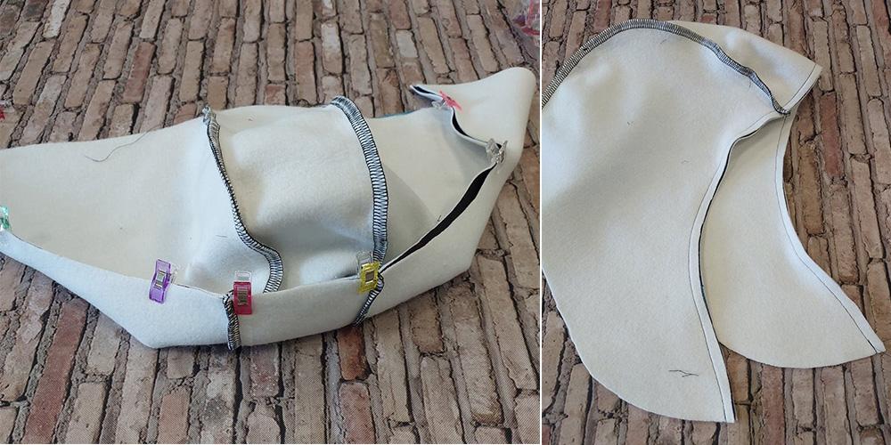 Z przodu utworzyła się zakładka. Sprawdź, czy materiały są dobrze połączone ze sobą. Możesz dołożyć dodatkowe szpilki w miejscach łączenia wielu warstw materiału.