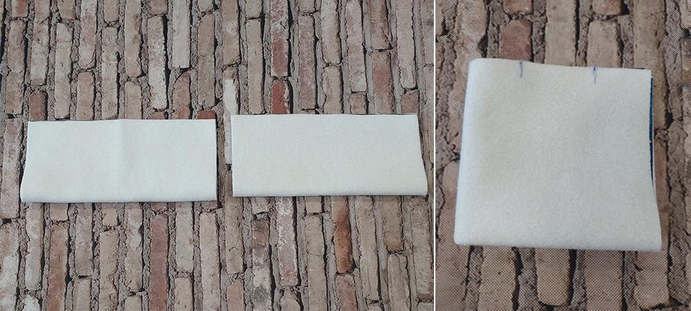 Prostokąty złóż wzdłuż dłuszego boku i jeszcze raz na połowę po to, aby równo wyznaczyć otwór (3 cm od zagięcia, otwór na 4 cm).