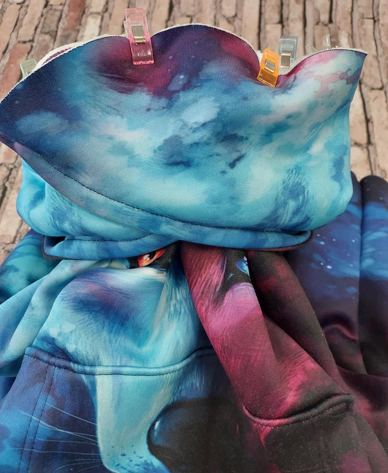 Przyszyj kaptur do bluzy. Szyj powoli, pamiętając, że zszywasz bardzo dużo warstw, które lubią się przesuwać ;)
