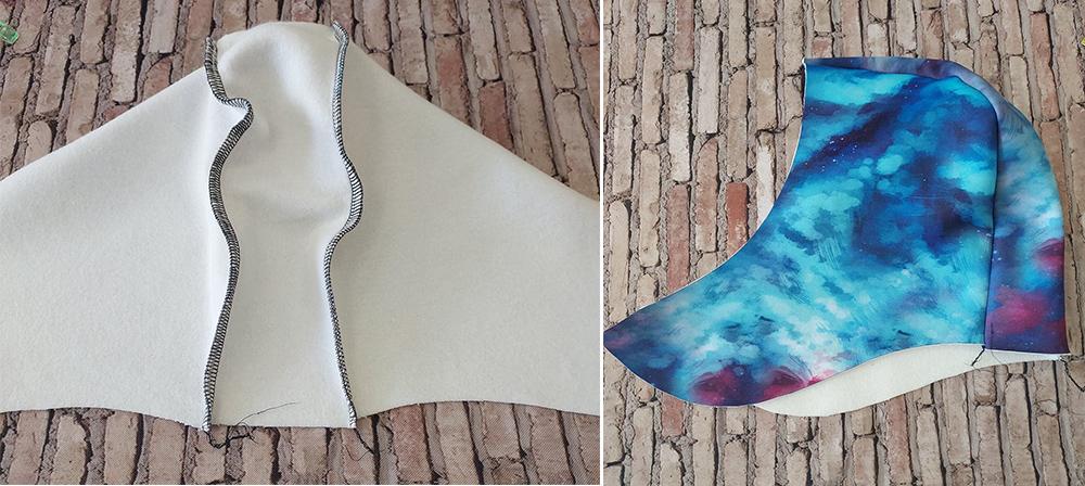 Warstwę wierzchnią odwróć na lewą stronę, warstwę wewnętrzną zostaw na prawej stronie.
