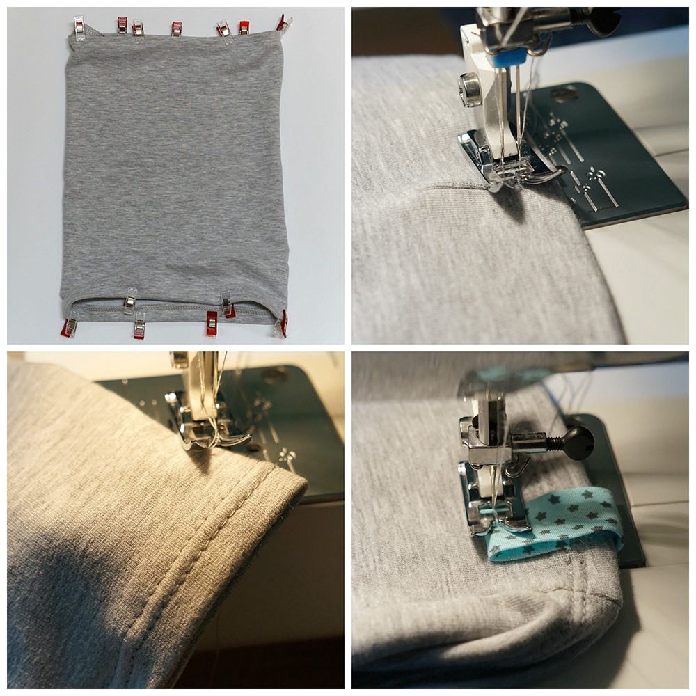 Ja zszywałam brzeg podwójną igłą dla ciekawego efektu, ale pojedynczy ścieg będzie równie dobry.