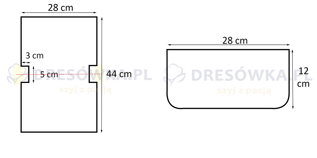 Tym razem gotowa fotma nie będzie nam potrzebna. Z łatwością sami narysujemy kształt kosmetyczki na bazie prostokąta o konkretnych wymiarach.