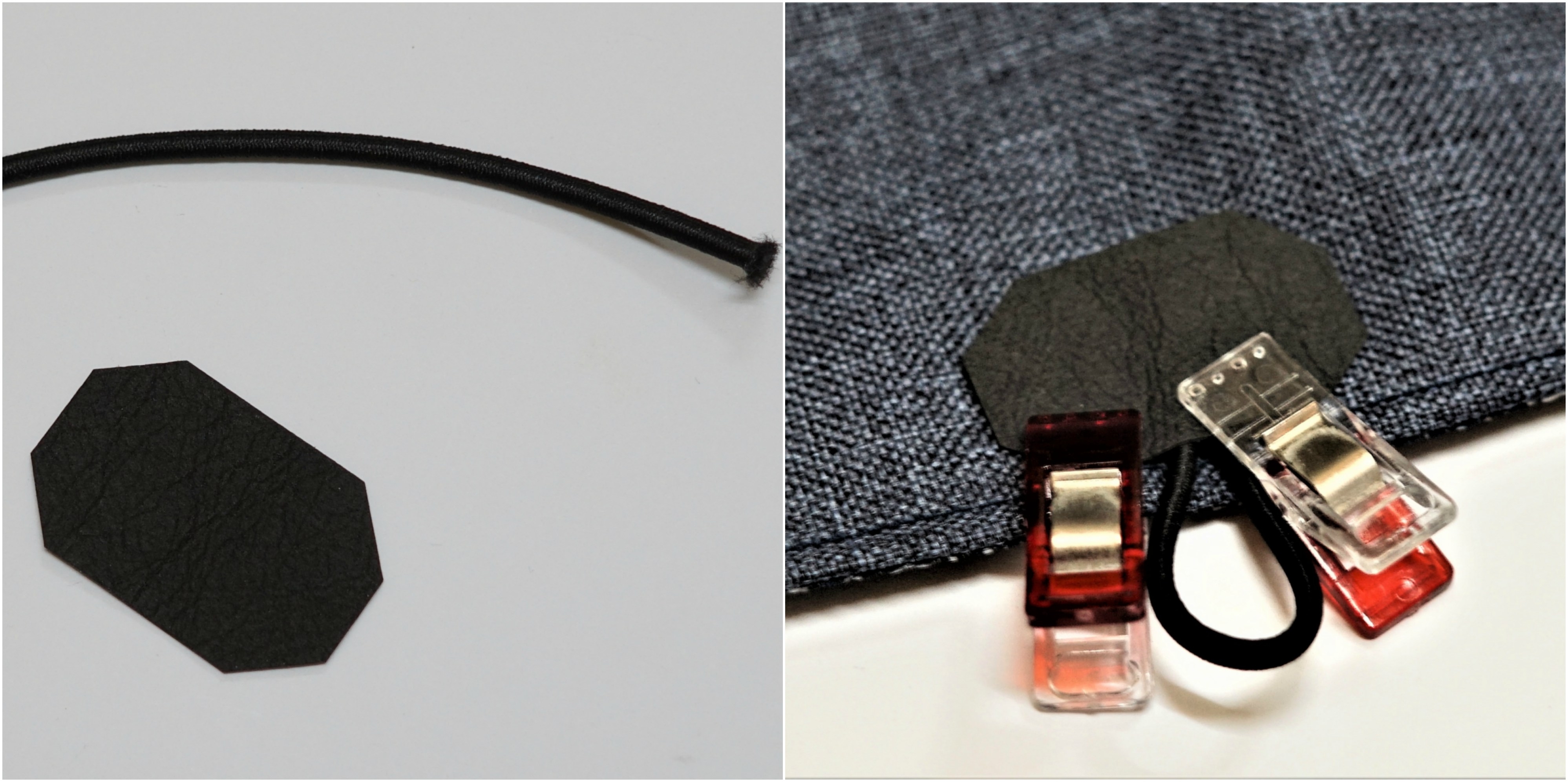 1. Dużą część z tkaniny lnianej prawą stroną do środka + kawałek gumki na zapięcie etui
