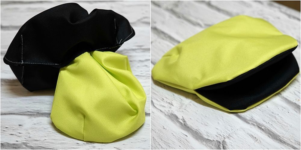 Wierzchnią część kosmetyczki po zszyciu obracamy na prawą stronę. eraz należy wsunąć wierzchnią część w również zszytą część z podszewki (tej nie obracamy na prawą stronę), tak, aby obie części prawymi stronami stykały się w środku.