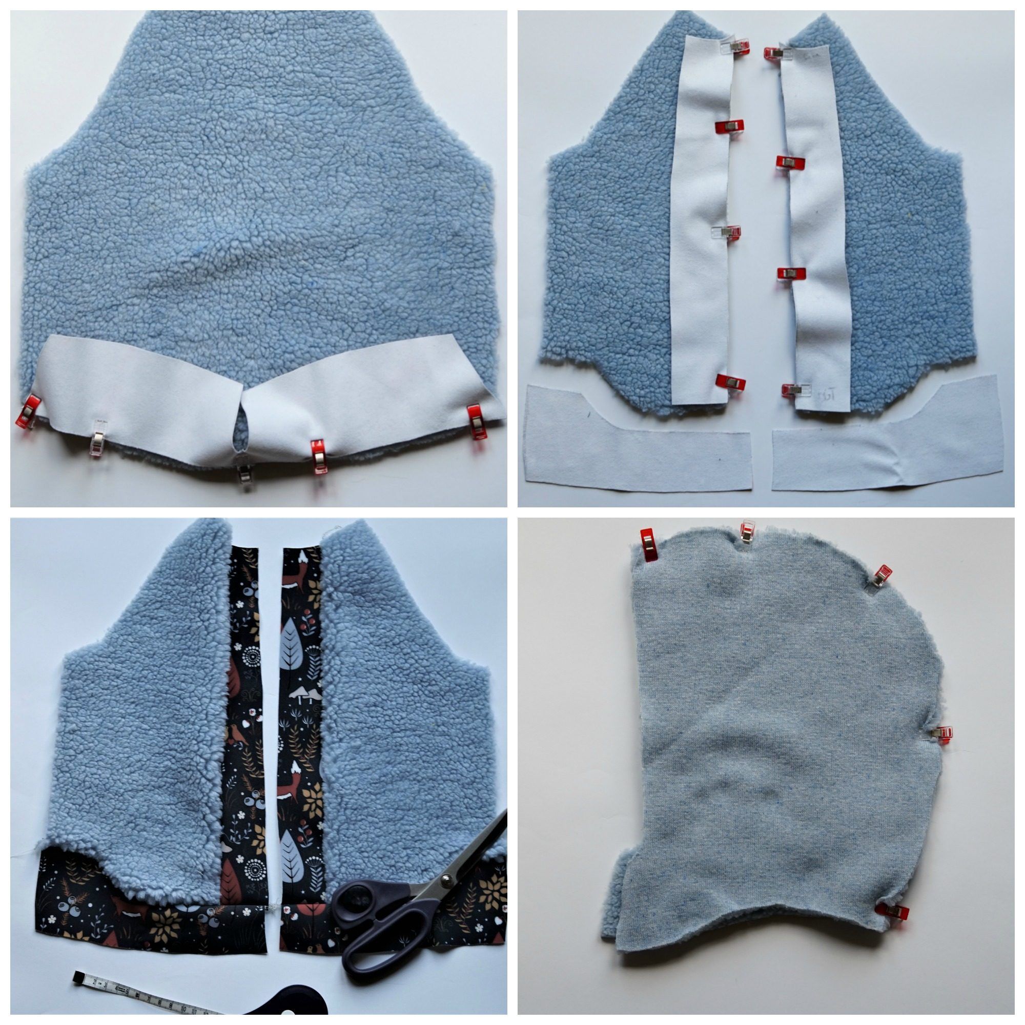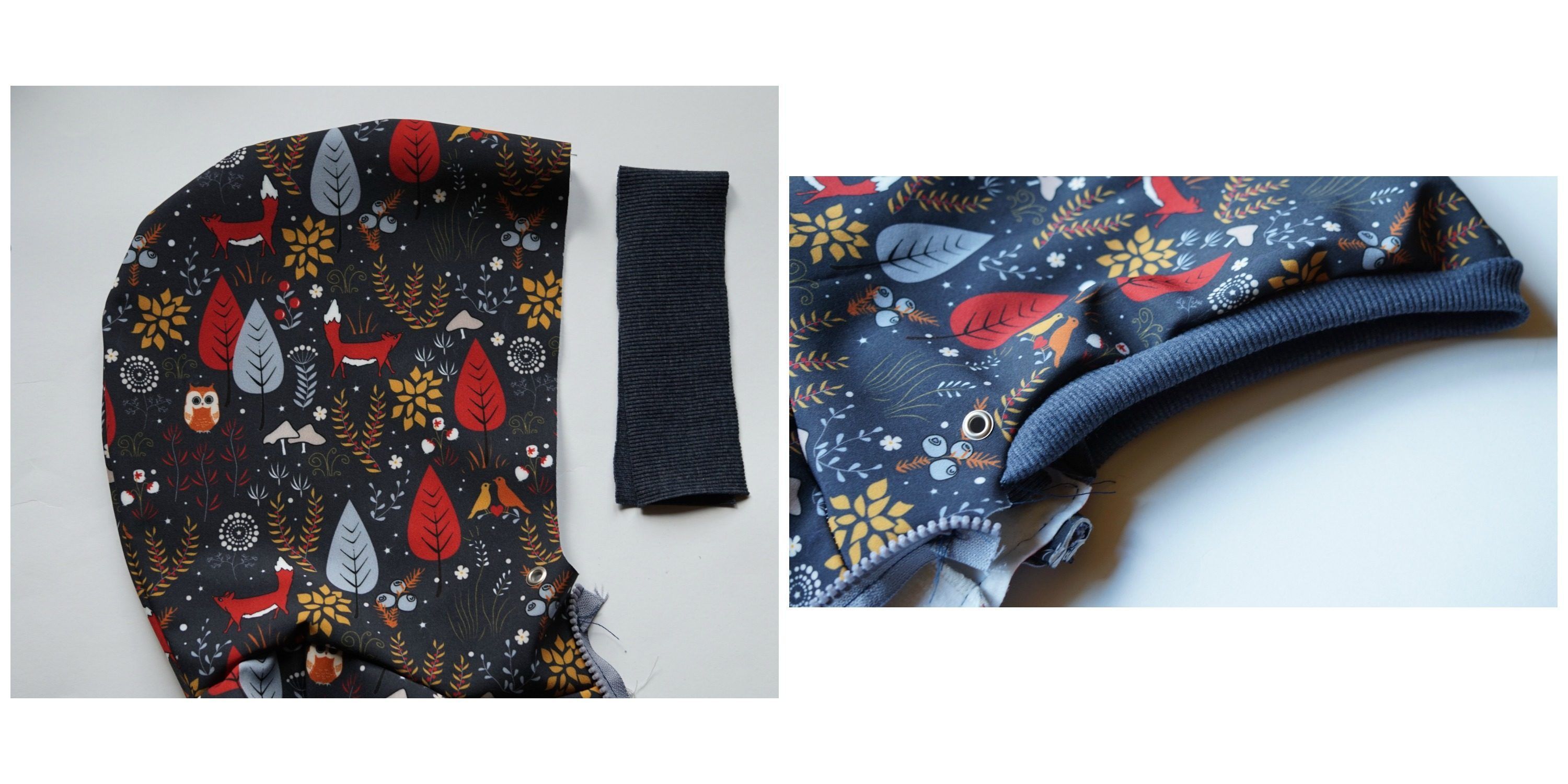 Teraz przyszywamy do wierzchniej kurtki kaptur;