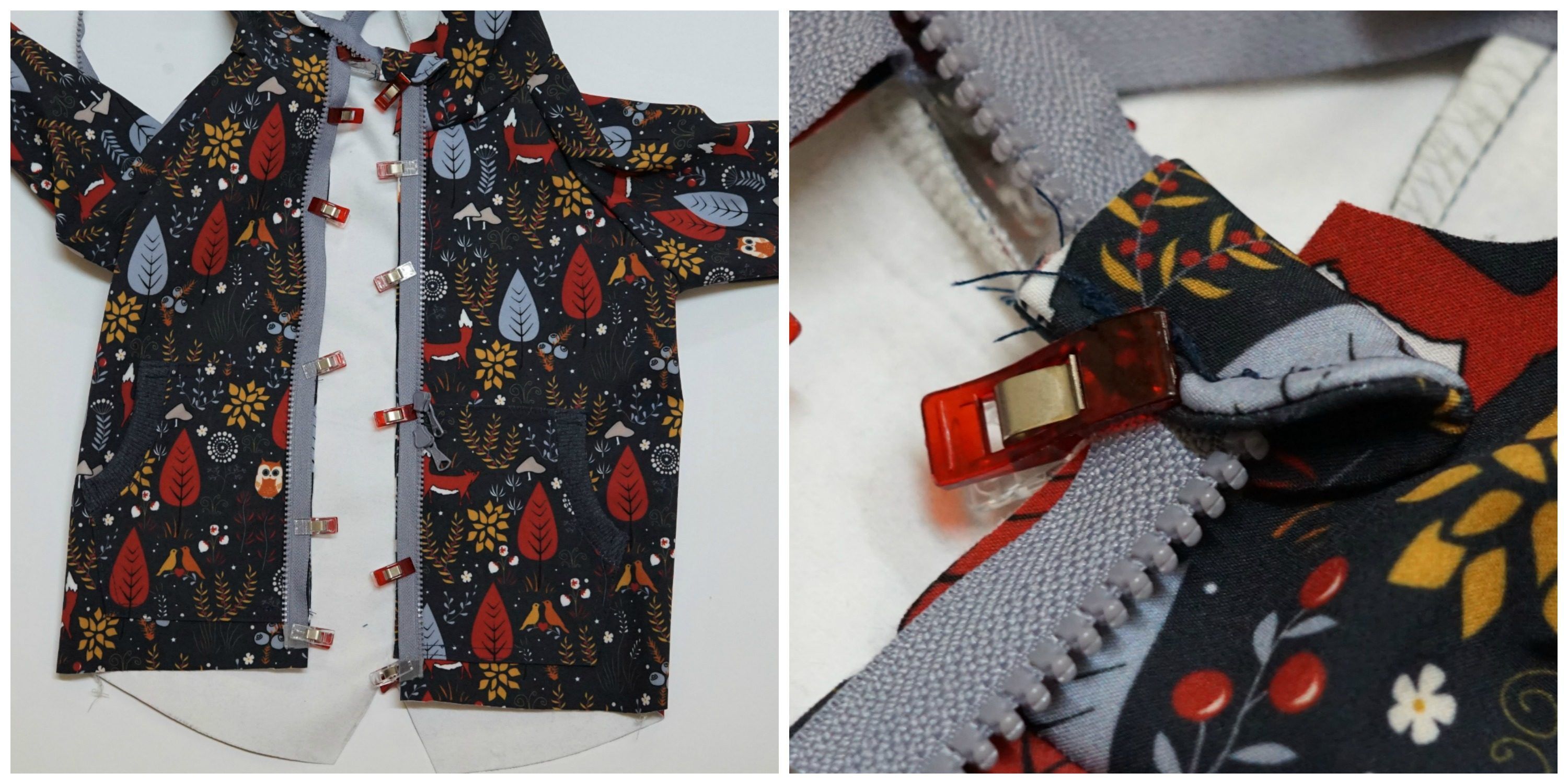 Pora na zamek. Dokładnie tłumaczyłam jego wszywanie razem z osłonką również w tutorialu na kurteczkę z softshellu <KLIK>. A dla tych, którzy wolą tutoriale wideo, na naszym kanale na YouTube wszywanie zamka świetnie wytłumaczyła i pokazała Pani Marta Walków <KLIK>.