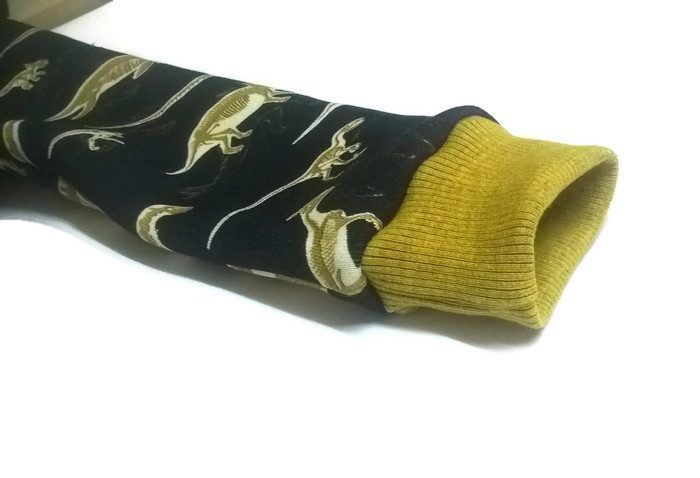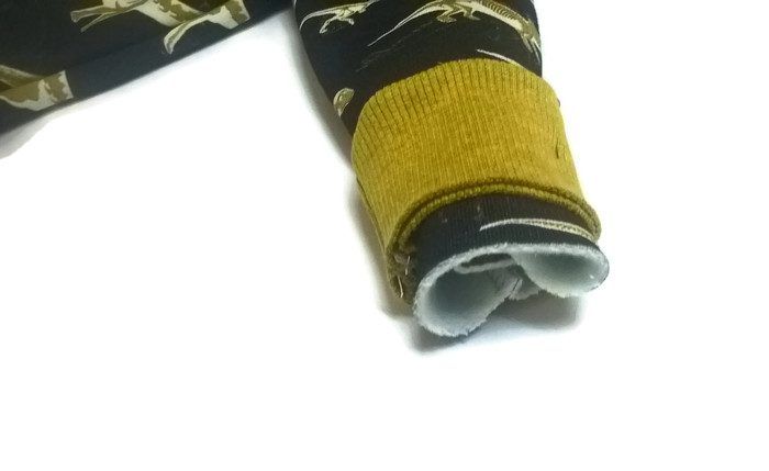 Gotowy ściągacz umieszczamy na rękawie bluzy (na rękawie również mamy dwa punkty styczne, jednym jest szew, drugi powstał po złożeniu rękawa na pół):