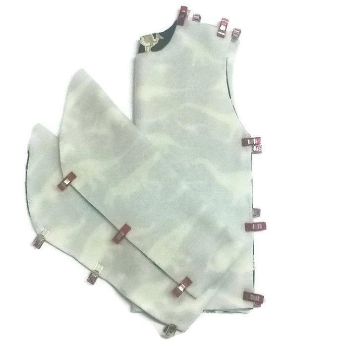 Tutaj również wyznaczamy szpilkami dwa punkty styczne po bokach ściągacza (jeden z tych punktów to po prostu szew):