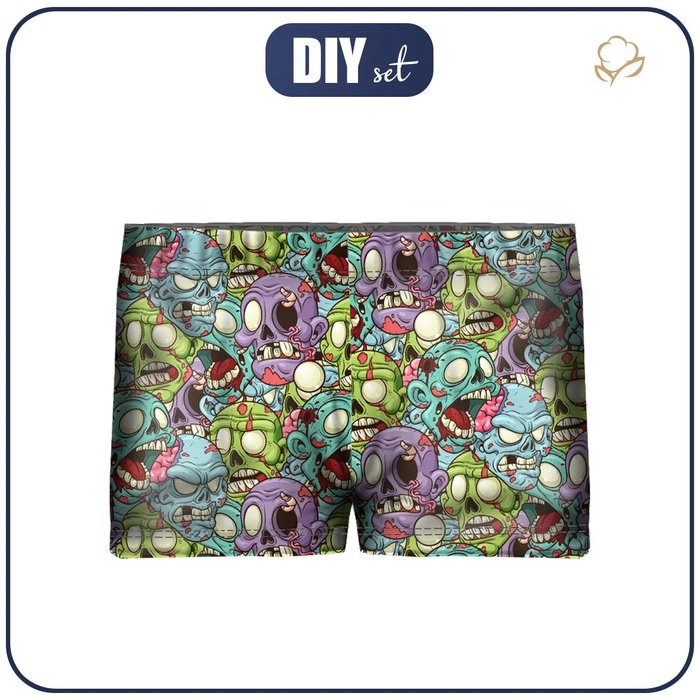 V sadě najdete nutné materiály k šití chlapeckých plavek. Všechny prvky jsou zabalené v papírové krabici.