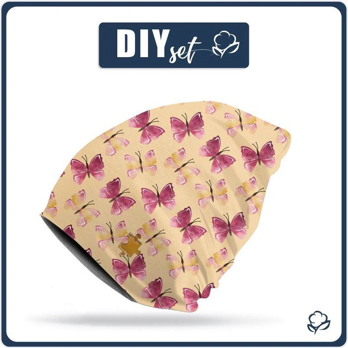 W zestawie znajdują się materiały niezbędne do uszycia czapki.