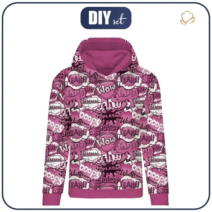 DÁMSKA MIKINA (POLA) CLASSIC S KAPUCÍ - KOMIKS (růžový) - teplákovina - M