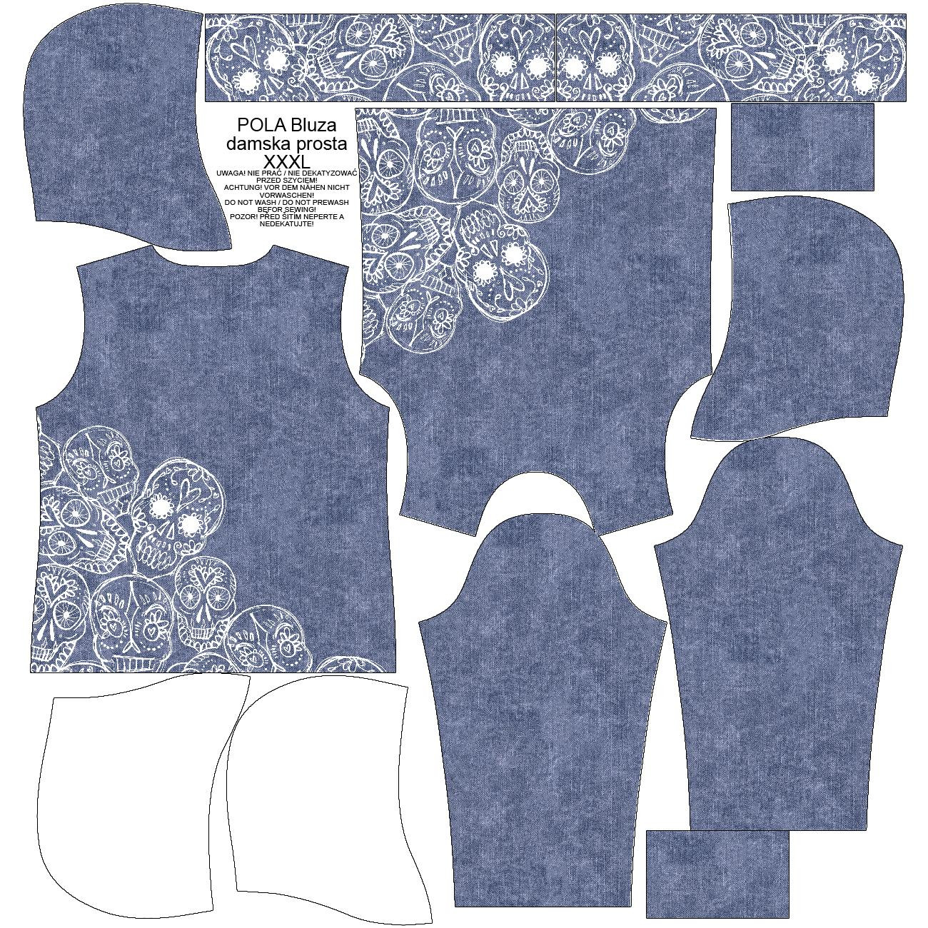 - Vytištěné na elastické teplákovině se smyčkou hotové prvky vzorku dámské mikiny s kapucí (stačí vyřezat a zašit)
