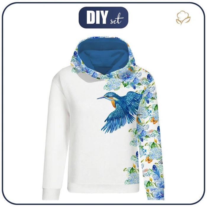 DÁMSKA MIKINA (POLA) CLASSIC S KAPUCÍ - LEDŇÁČEK A ŠEŘÍKY (LEDŇÁČEK NA LOUCE) / bílý - teplákovina - S
