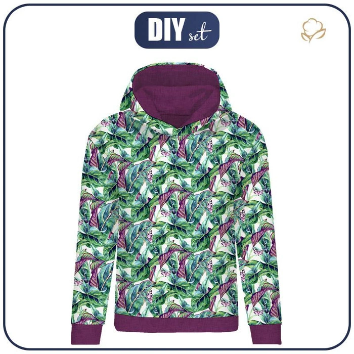 DÁMSKA MIKINA (POLA) CLASSIC S KAPUCÍ - MINI LISTY A HMYZ VZ. 1 (TROPICKÁ PŘÍRODA) / bílý - teplákovina XL