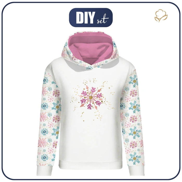 DÁMSKA MIKINA (POLA) CLASSIC S KAPUCÍ - SNĚHOVÉ VLOČKY MIX - teplákovina L