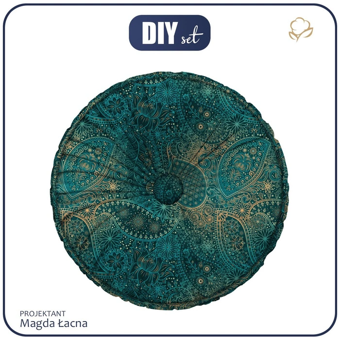 Sada DIY obsahuje materiály potřebné k ušití kulatého dekorativního polštáře. Všechny prvky jsou baleny v kartonové krabici. Velurový panel obsahuje: 1x přední strana polštáře, 2x zadní strana polštáře, 2x lem na zip, 2x ozdobný lem, 1x obvodový lem.
