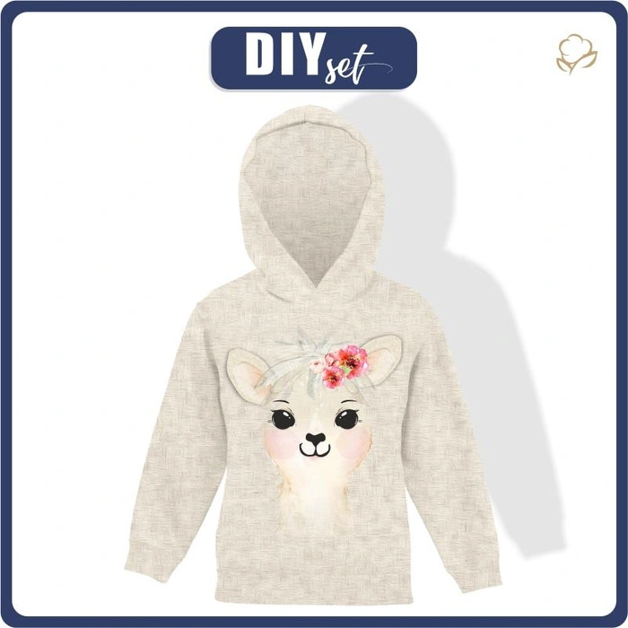 V sadě najdete nutné materiály k šití dětské mikiny s kapucí.