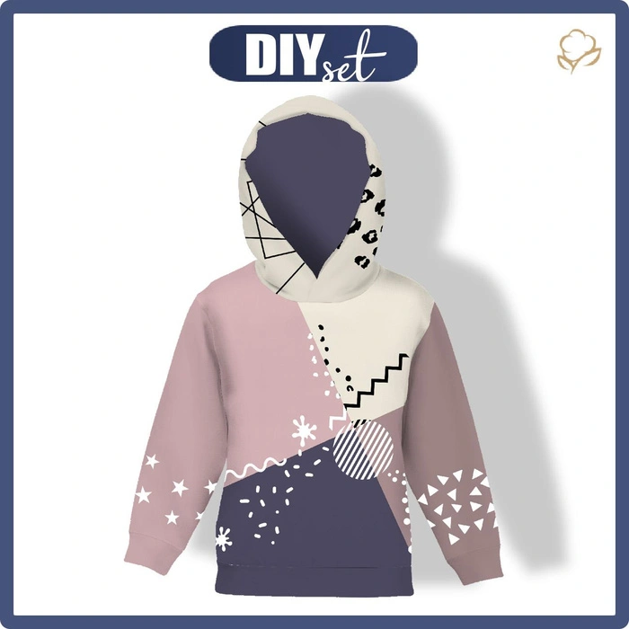 V sadě najdete nutné materiály k šití dětské mikiny s kapucí.