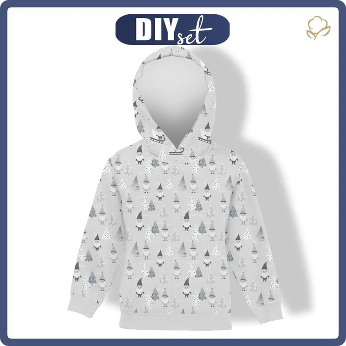 DĚTSKÁ MIKINA S KAPUCÍ (ALEX) - TRPASLÍCI V LESE (LESNÍ TRPASLÍCI) / ŠEDÝ - Sada šití