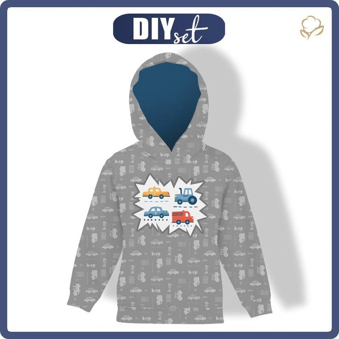 DĚTSKÁ MIKINA S KAPUCÍ (ALEX) - VOZIDLA vz. 2 / bílý (ADVENTURE BEGINS) - teplákovina 98